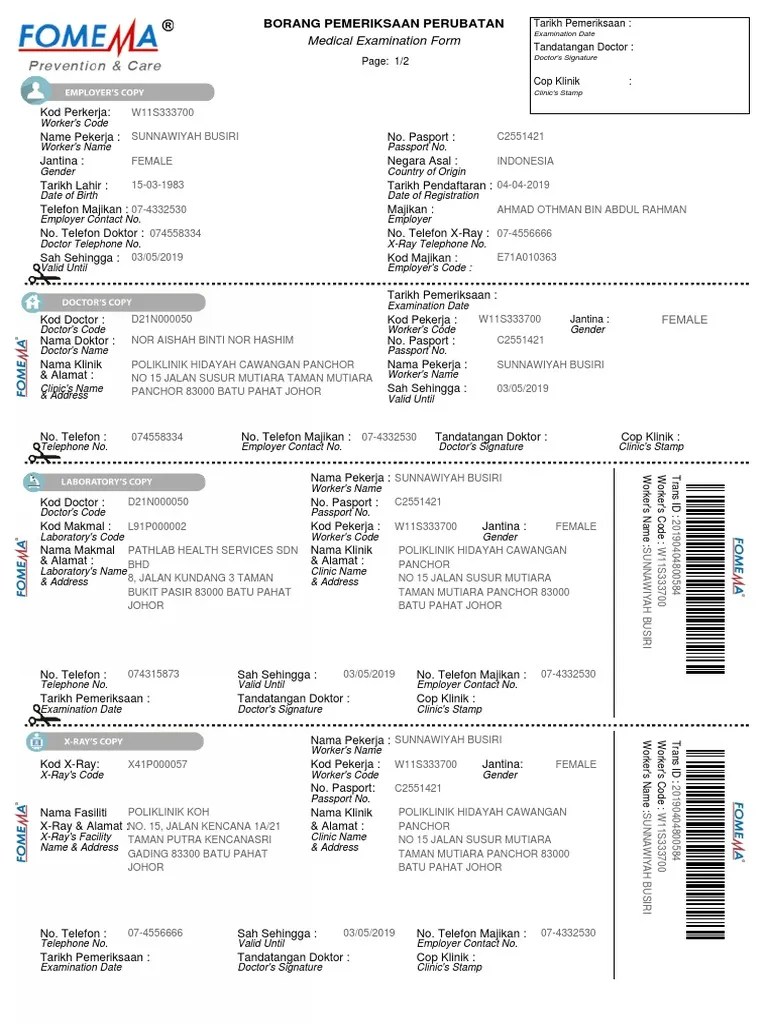 Check test result from fomema website · go to fomema employer portal; We did it just in time at the end of her menstrual cycle n the clinic cleared her record with fomema earlier today. Bhd (www.fomema.com.my) location in kuala lumpur, malaysia , revenue, industry and description. (fomema®) is an appointed company to operate a comprehensive foreign workers' medical examination screening system in peninsular malaysia. Live chat and whatsapp available from. Check the online result but status .